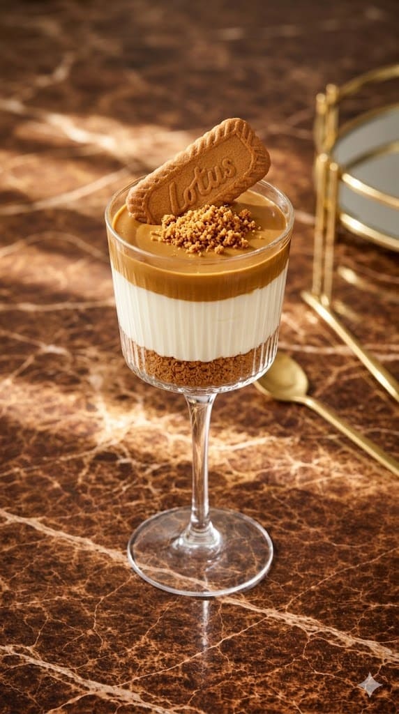 Lotus Biscoff parçacıkları, özel krema dolgusu ve karamelize bisküvi sosu. Zarif sunumuyla hafif ve karakteristik bir tatlı deneyimi.